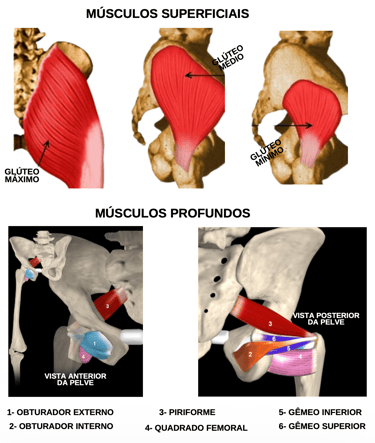 - Anatomia Aplicada: atuação precisa sobre o glúteo máximo, médio e mínimo, responsáveis por extensão, abdução e rotação do quadril.